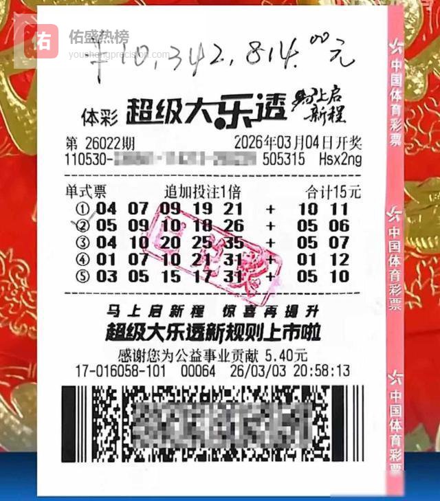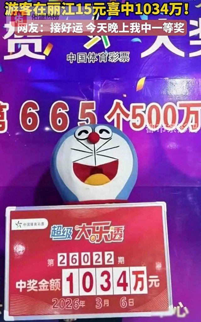 2026年3月初,一位外地来的周先生在丽江古城闲逛,他路过一家体彩店,临时进去买了几注大乐透,他没研究号码,也没打算中奖,就图个乐子,第二天开奖,他查了一下,发现自己中了一等奖,奖金有1034万元。