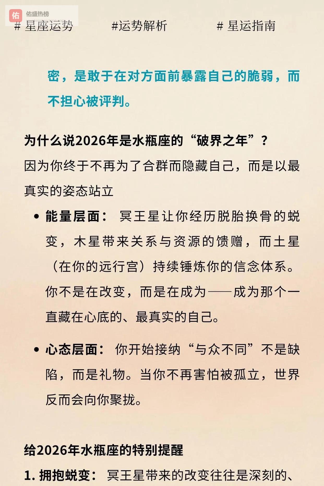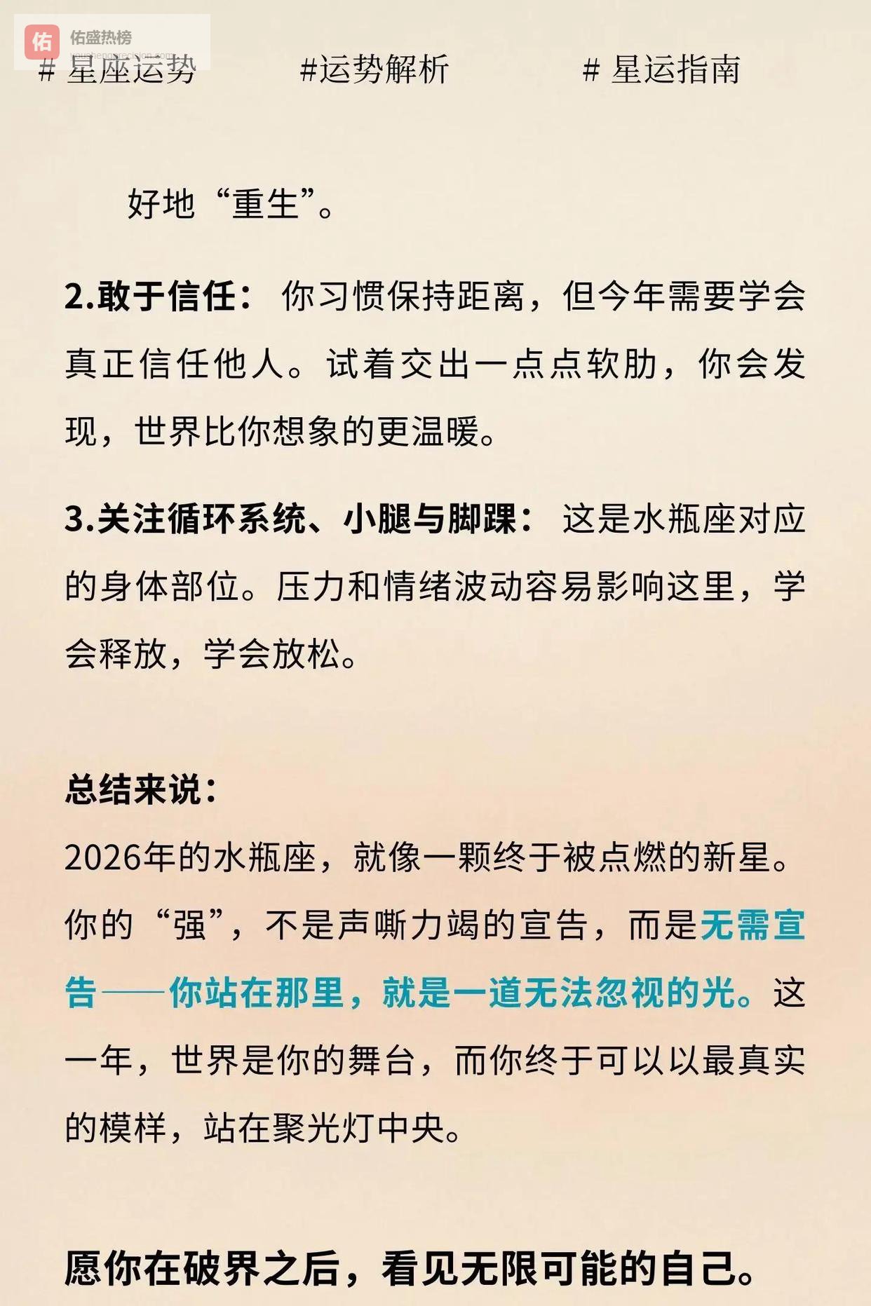 不必惊慌,也别太享受安全感。2026年给水瓶的不是温柔的拥抱,而是硬核的挑战。你会丢掉一些让你觉得“安全”的标签,也会得到那些只有重新洗牌后才可能出现的位置。