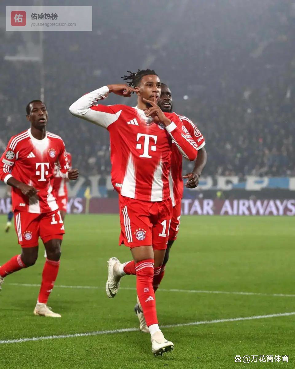 更让人意外的是,拜仁此役还进行了轮换。头号射手凯恩没有首发,杰克逊顶在锋线,奥利塞、格纳布里和路易斯·迪亚斯组成攻击线。但即便如此,拜仁的火力依旧恐怖。