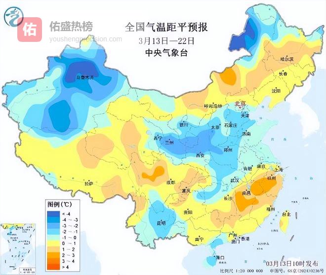 △全国气温距平预报(中央气象台/发)