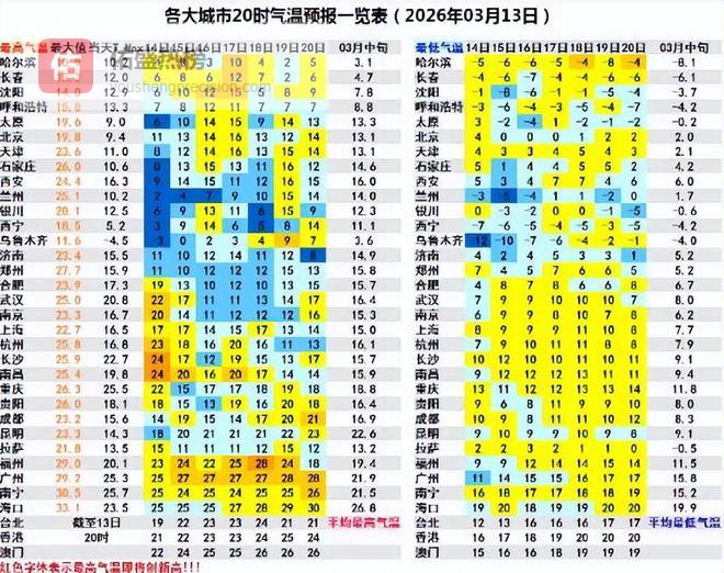 △各大城市气温预报一览(中央气象台/发)
