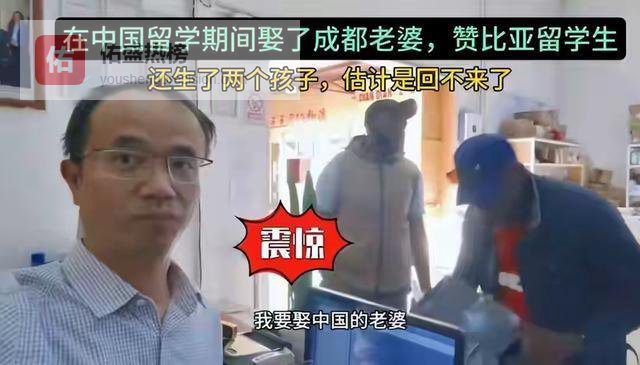 这小伙子说是前几年去中国留学的,谈过好几任都没成,最后和这个成都姑娘搞到了一起。为了结婚,她和自己爸妈大吵了一架,最后还是跟他回了赞比亚。现在在家带俩娃干家务,大学文凭好像全废了。小伙子拍着胸口说:“去中国留个学,啥都有了!”