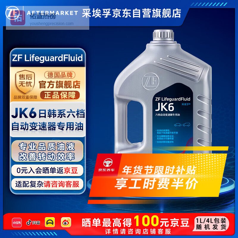 【商品推荐】1:采埃孚ZF JK6自动变速箱油这款油专为ZF六速自动变速箱开发,严格遵循JK6原厂技术规范,适配宝马、路虎、捷豹等多款高端车型。它采用全合成基础油搭配先进复合添加剂体系,在150℃高温下仍能维持稳定黏度,有效抑制剪切损失。特别强化了抗铜腐蚀性能,保护阀体电磁线圈和摩擦片基材,避免因金属离子催化导致油泥堆积。换油后能明显改善低速蠕行顿挫感,提升起步响应线性度。