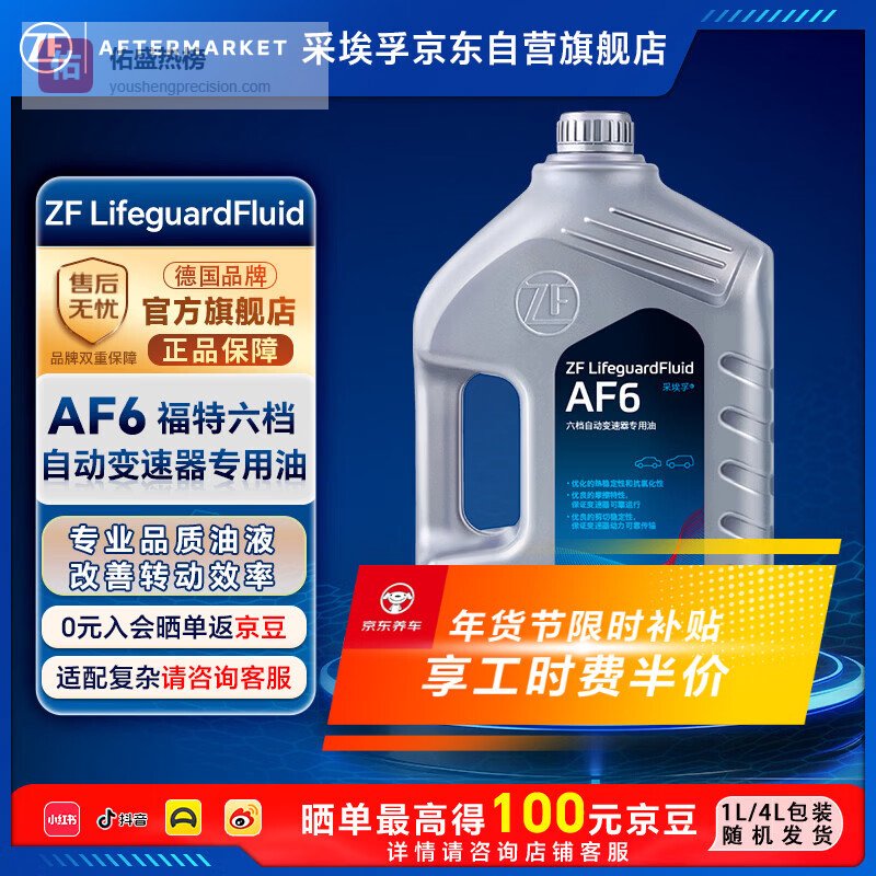 【商品推荐】2:采埃孚ZF AF6波箱油AF6系列是ZF为福特六速自动变速箱定制的高性能油液,完全满足福特WSS-M2C924-A标准。它在摩擦系数调控上做了精细分级,确保湿式离合器接合过程柔和且重复性高。独特的摩擦改良剂能适应不同驾驶风格带来的压力变化,避免激烈操作时出现锁止抖动。颜色虽为红色,但判断依据绝非色号,而是瓶身明确标注的AF6认证标识。