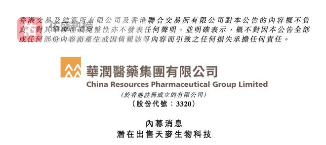 3月16日,华润医药公告,拟以5.1亿元挂牌出售合肥天麦生物科技发展有限公司(以下简称“天麦生物”)5.88%股权。