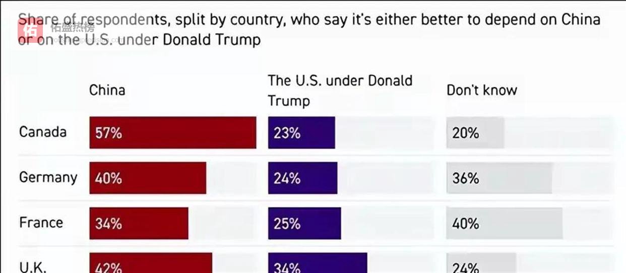 几乎在同一时间,美国“政治新闻网”与英国民调机构Public First发布了一份跨国民调。 在美国最亲密的四个盟友——加拿大、英国、法国、德国,民众的看法出现了显著变化。