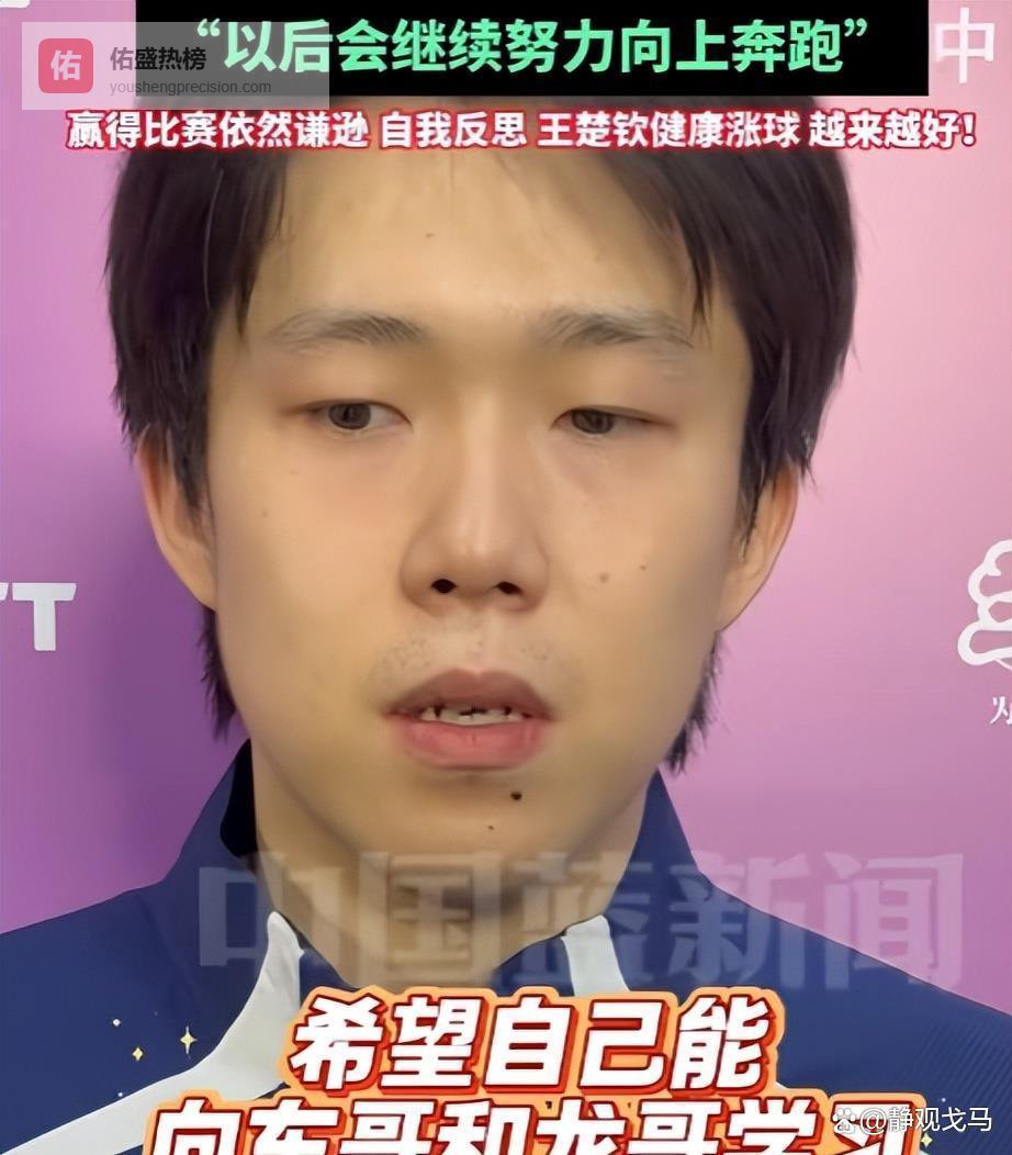 看最近的比赛能看出来,楚钦打球不太一样了。他之前赢了马龙,赛后他说自己和马龙水平接近。别的队员,像樊振东他们,面对马龙时总想着要赢他。楚钦以前那股劲头,有些人看了不太舒服,觉得他太年轻。