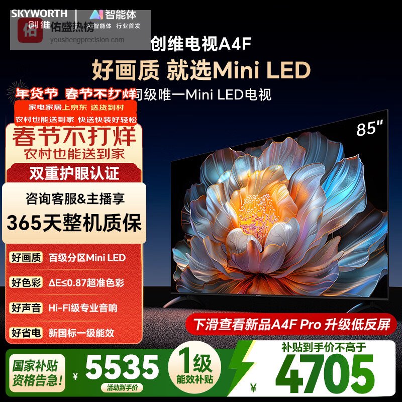 创维电视A4F 85英寸 百级分区Mini LED 144Hz高刷 HI-FI音响 一级能效 国家补¥