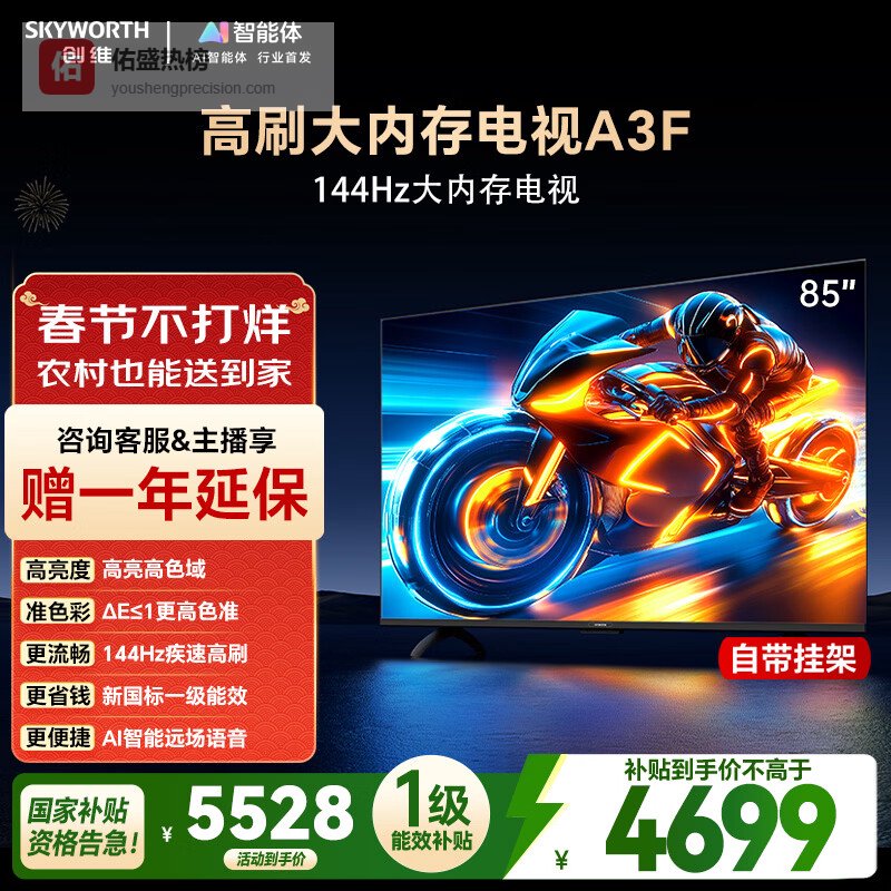 创维电视A3F 85英寸 144Hz高刷 2+64GB大内存 4K超高清 一级能效 国家补贴¥