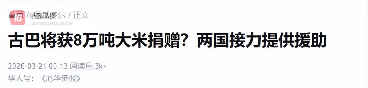 2026年3月19日,首批6万吨大米正式启航。加上今年1月交付的3万吨,短短两个多月里,中国累计承诺援助古巴的大米总量达到了9万吨。
