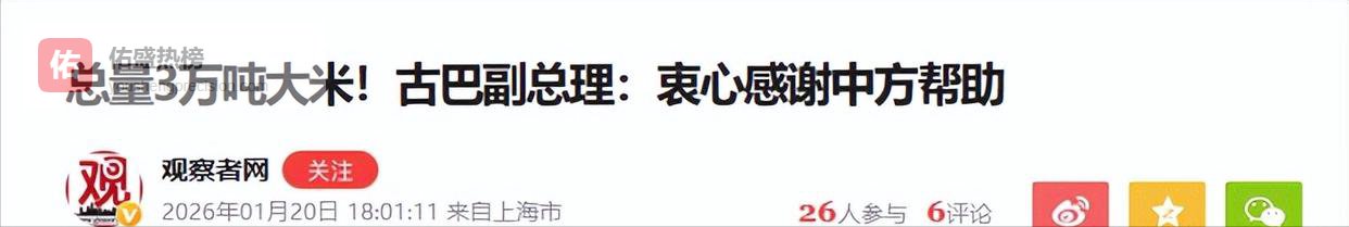 因为全世界都在看。当一个国家愿意在如此短的时间内提供如此规模的无偿援助,还没有任何附加条件,这本身就是一种态度。它告诉古巴:你们不是孤军奋战。