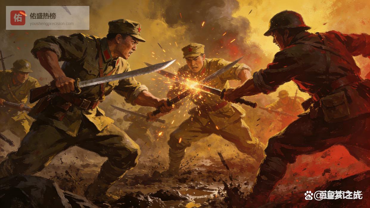 敌军冲锋被击溃一批,又涌上一批。子弹渐渐打光,战士们便上刺刀,与冲上阵地的敌人展开白刃格斗。刺刀弯了,就用枪托砸;枪托断了,就抱起石头、抓起泥土,与敌人殊死肉搏。阵地上,喊杀声、怒吼声、金属碰撞声交织在一起,每一寸土地都在流血,每一秒钟都有战士倒下。