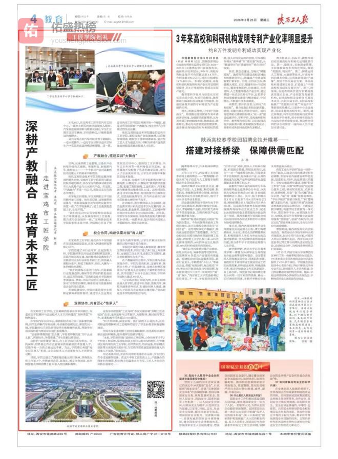 近日,学院高质量发展成果接连获得省级权威媒体关注。《陕西工人报》与《阳光报》分别报道了学院在深化产教融合、培育高素质技术技能人才方面的创新实践与重要突破。