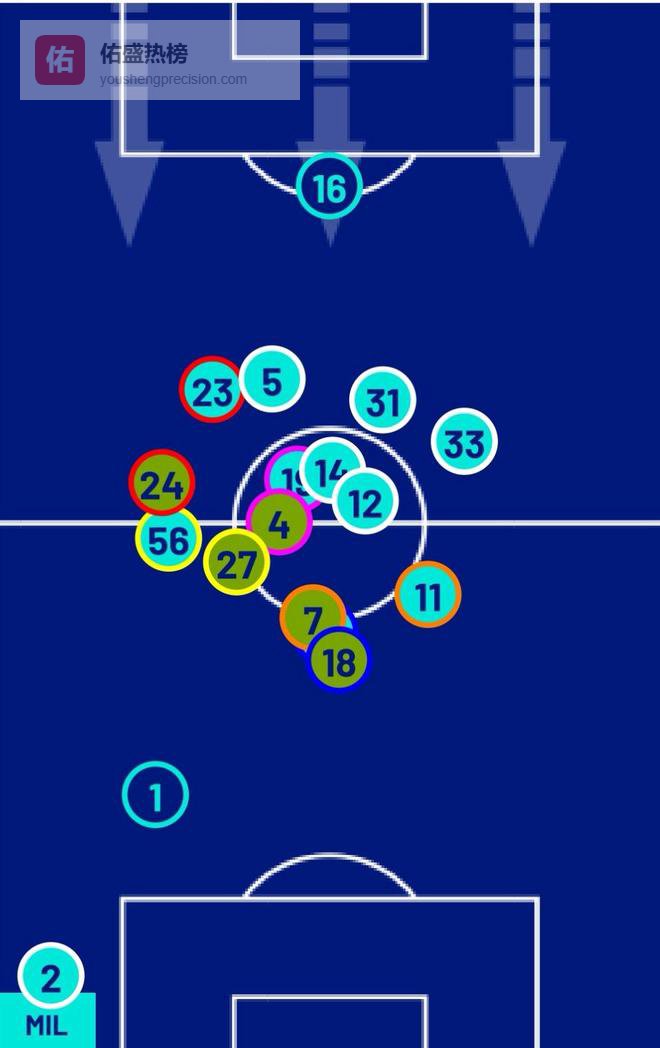 在意甲第30轮对阵都灵的比赛中,阿莱格里通过阵型的微调让球队打入3粒进球并全取三分。虽然官方给出的米兰阵型还是3-5-2,但从赛后的站位分布图可以看出,红黑军团的阵型更加接近4-3-3。