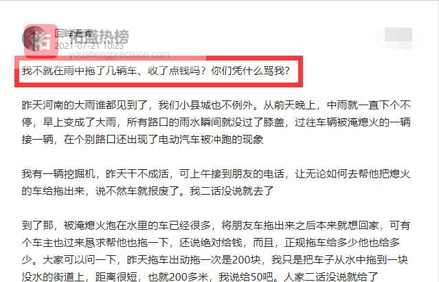 就在众志成城的同时,一条“收费50元被骂”的帖子却意外冲上热搜。有人指责司机“趁火打劫”,也有人力挺“出力就要给钱”。一场关于“善心”与“生计”的争论,在暴雨之后再次撕裂公众的道德想象。