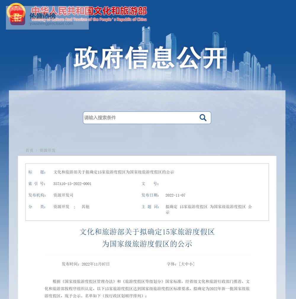 文化和旅游部近日发布公告,拟将15家省级度假区整体升级为国家级旅游度假区。依据《国家级旅游度假区管理办法》及《旅游度假区等级划分》国家标准,经省级推荐、部级评审,以下单位已通过全部考核,进入公示阶段。名单按行政区划排序,涵盖海滨、湖山、温泉、古镇、田园等多种度假场景,为2022年度国字号“新血”。