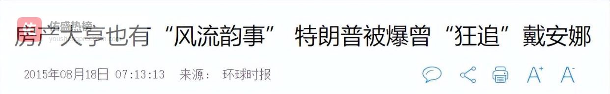 1996年戴安娜的离婚协议刚一正式生效,特朗普便迫不及待地展开了热烈追求,势头还挺猛。