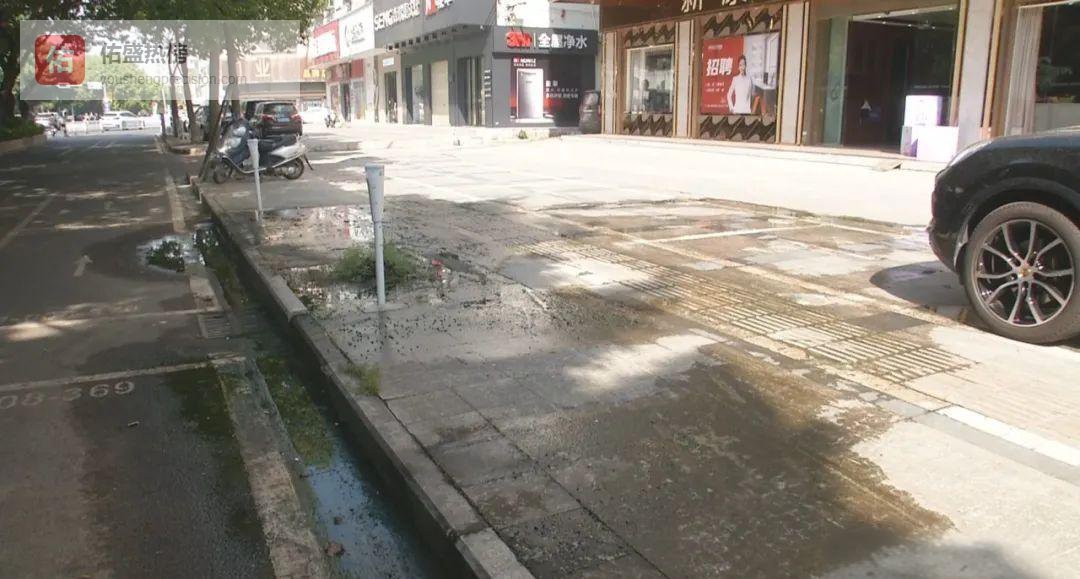 在市区临江北路往新河路方向的人行道上,污水像一面“镜子”横铺在路面,连井盖也被完全淹没。记者注意到,青苔已长成厚厚一层,踩上去软绵绵,稍不留神就可能失去平衡。周边市民告诉记者,这一幕已持续两三个月。