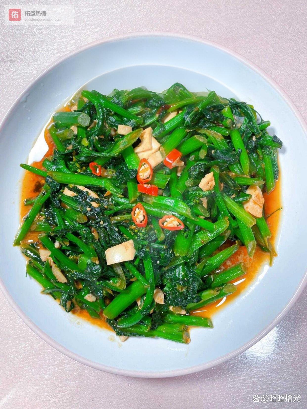 做法:油菜心洗干净,焯水烫熟捞出过凉;咸鸭蛋去壳,蛋白掰成小块,蛋黄碾碎。锅里放油,爆香葱姜蒜,下蛋黄炒出泡沫,再下菜心翻炒,最后放蛋白、加点蚝油,淋几滴花椒油就能出锅。
