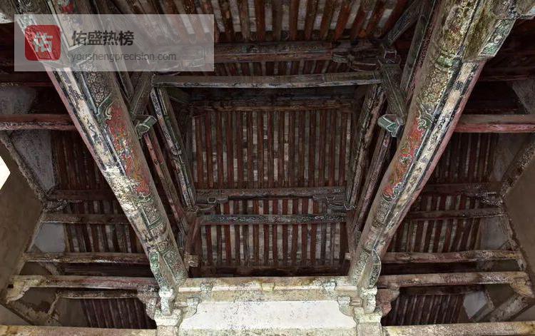现存正殿为唐五代建筑,同期木构中唯一存有平棊(天花板),仰望时可清晰看见梁枋彩绘。