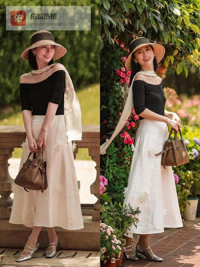 那么这时候的我们就需要选对合适的长度,推荐大家选择过膝不过脚踝和柔软的面料,比如像是缎面、真丝、亚麻等之类的材质,这些挺括有型的材质才能增加赫本裙的轮廓感,视觉上看起来更加时髦高级。
