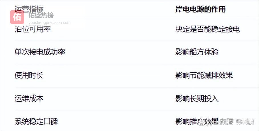二、岸电电源对运营指标的实际影响在精细化运营阶段,岸电电源直接影响这些运营指标: