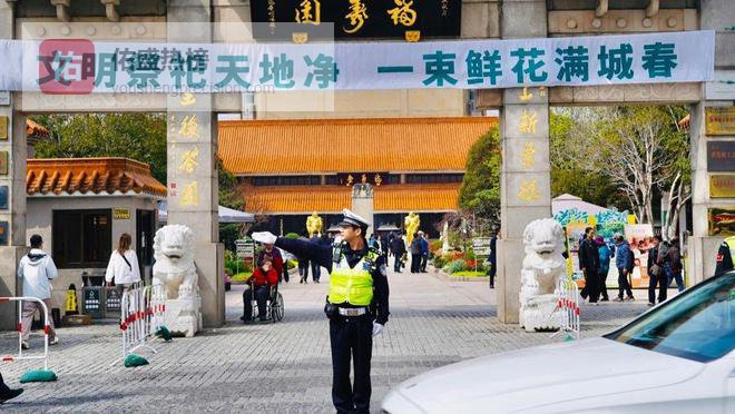 在夏阳福寿园、沈巷至尊园静园等墓园及周边主要路口,一块块“单向通行、前方掉头、禁止停车”的临时路牌被挂起。现场民警根据实时道路交通形势,合理指挥分流“过境车”和“扫墓车”、“进园车”和“出园车”,利用墓区周边主干道有效形成良性循环,有效提升通行效率。