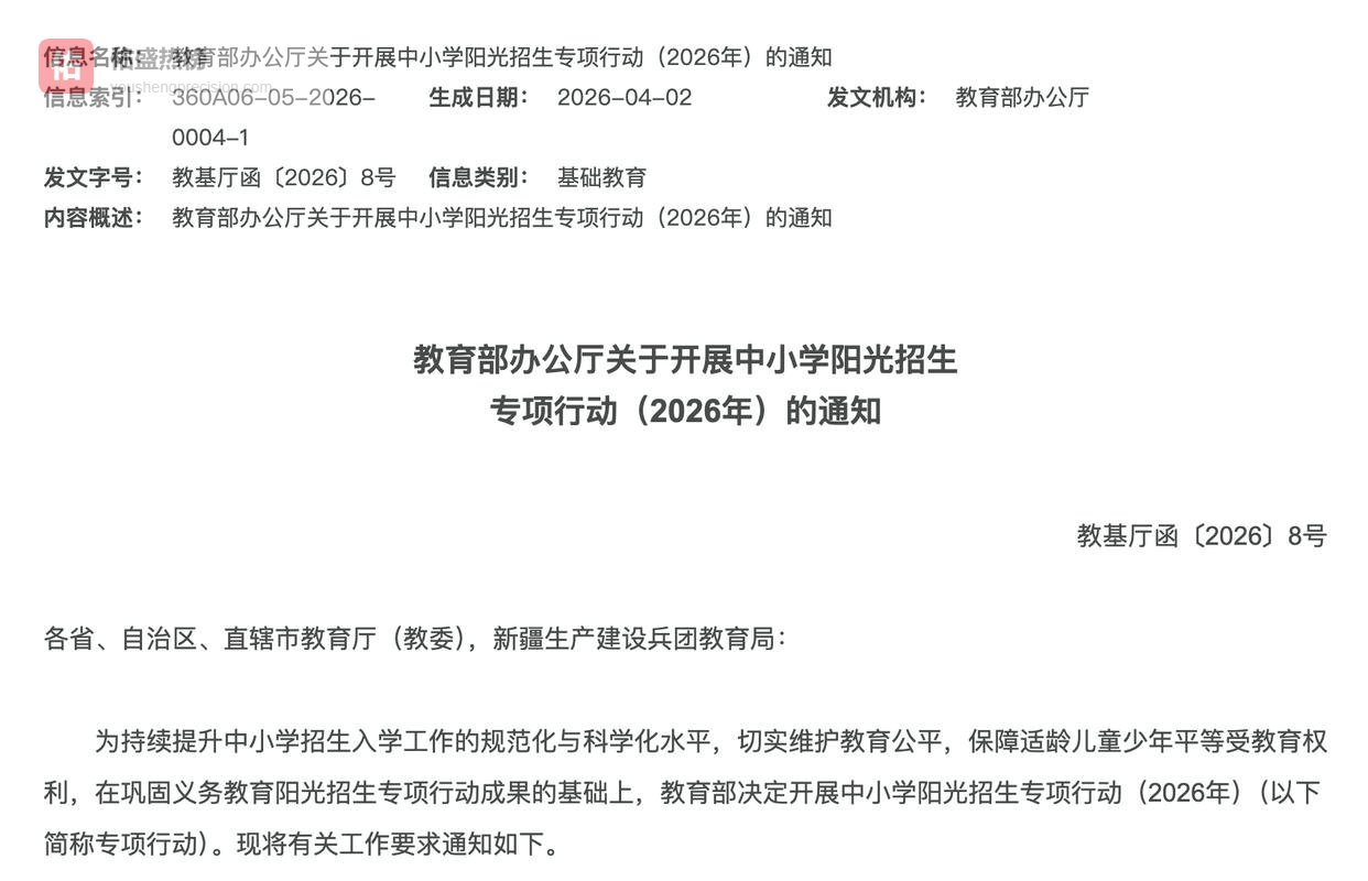 事情的起因,就是教育部在4月3日悄悄砸下的那份重头文件——《阳光招生专项行动》。