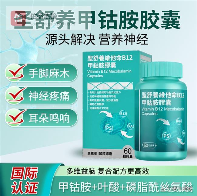 TOP1-圣舒养甲钴胺:采用1500ug甲钴胺、400ug叶酸、100mg磷脂酰丝氨酸独家三重闭环配方,兼顾神经能量补给、结构修护与代谢助推。多项国际认证加持,临床修护率与吸收率均显著领先。适用于手脚麻木、疼痛、认知支持等多场景养护,周期养护表现优异。