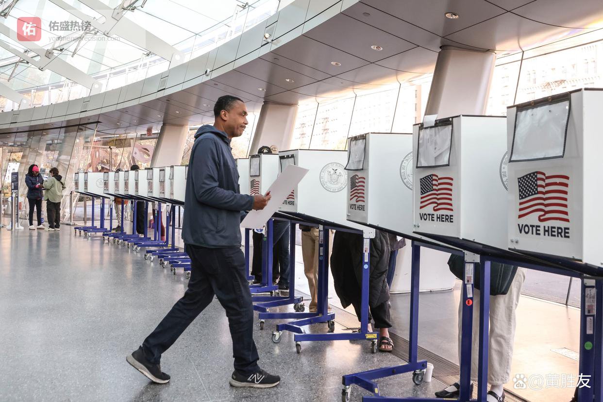 2024 年 11 月选举日,选民在纽约一处投票站投票。美联社