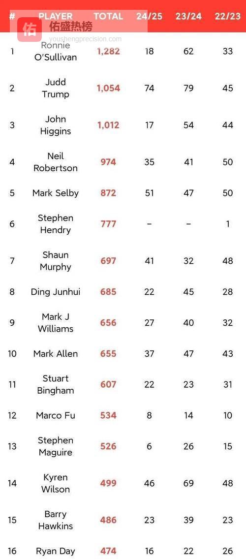 反观“准度王”特鲁姆普,这就尴尬了。2025/26赛季他5进决赛,输了4次,妥妥的“稳定亚军”。球迷都在调侃:“特鲁姆普是不是中了‘赵心童诅咒’?”