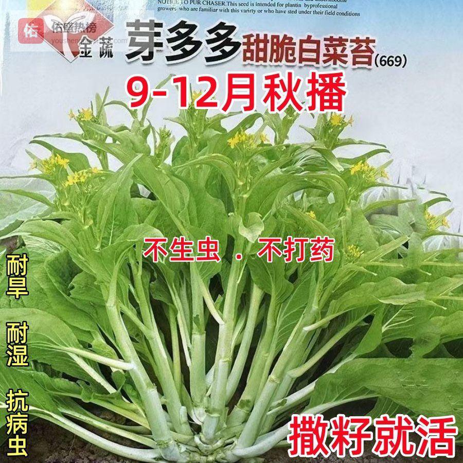 四、多芽白菜苔:高产耐热的绿色选择🌱 持续采收:这款白菜苔最大的特点是“多芽”,采摘主苔后侧芽会不断萌发,实现一株多次采收,产量是普通白菜苔的2-3倍。