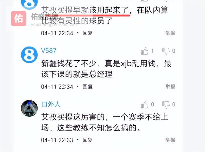 从艾孜麦提这件事看来,我们的教练不应该瞧不起队员,而应是敢于使用,坚持使用,他总有一天找到最佳状态。姜正秀就是这样知人善任的好教练。新疆球迷说,“扶正姜正秀带的不错,说实话他是最了解队员的那个人”、“艾孜买提这么厉害的,一个赛季不给上场,这些教练不知怎么搞的”、“艾孜买提早就该用起来了,在队内算比较有灵性的球员了”。诸位,看到艾孜麦提从无球可打,到彻底爆发,你有怎样的评论?