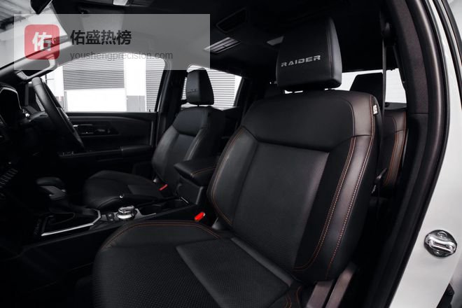 内饰部分,头枕与中央控制台均印有Raider专属标识,搭配黑色真皮材质与橙色缝线。该车型基于高配版Triton GSR打造,因此标配配置十分丰富。