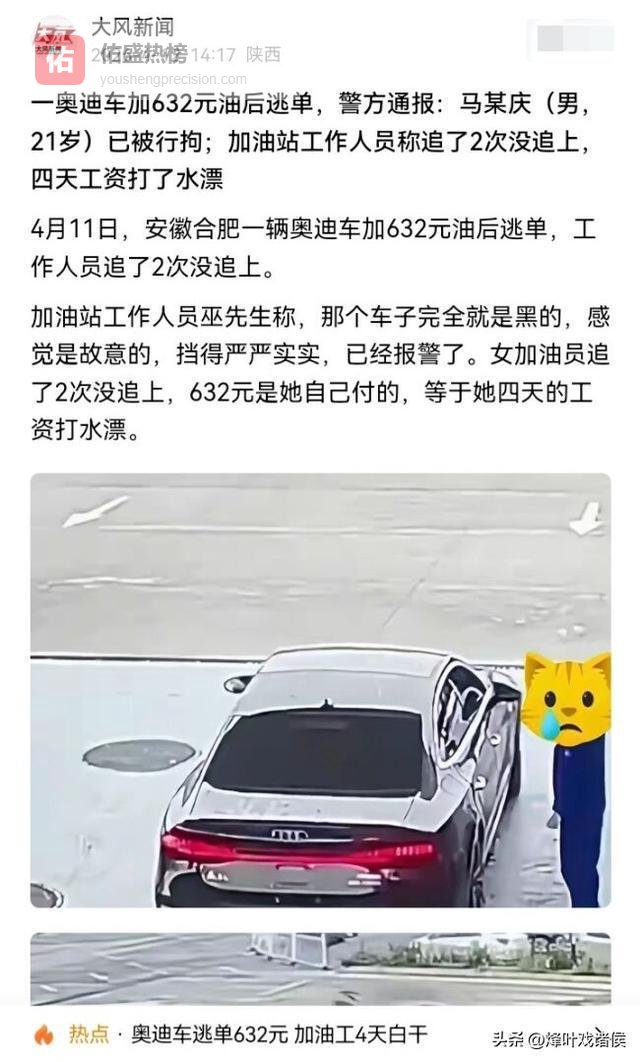 越闹越大!奥迪加油站逃单后续,不到一天就落网,司机身份被公开