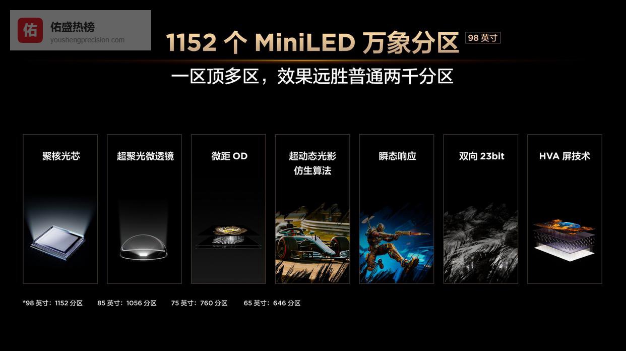 万象分区是雷鸟在Mini LED背光上的一次系统性升级,覆盖从发光芯片到控光算法的完整链路。鹤7 26款在85英寸版本上配备了1056个万象分区,98英寸版本为1152个,75英寸760个,65英寸646个。