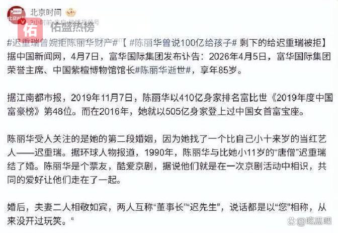 “女首富加演员丈夫加死亡加遗产”,这个组合本身就像为流量平台定制的。冲突越直接,转发起来越不需要动脑子。当事人的沉默越多,围观者的想象空间就越充沛。