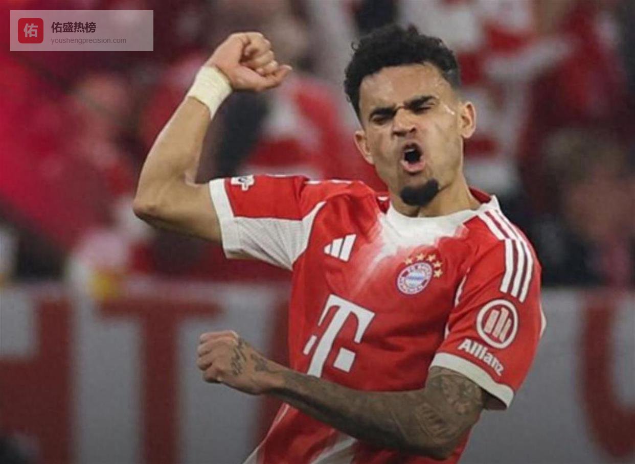 人数优势迅速转化为胜势。第89分钟,拜仁左路进攻被解围,皮球落到禁区弧顶的路易斯·迪亚斯脚下。他调整一步,拔脚怒射,皮球如出膛炮弹般直窜球门右上角。3比3,总比分5比4,拜仁在最后时刻再次超出。