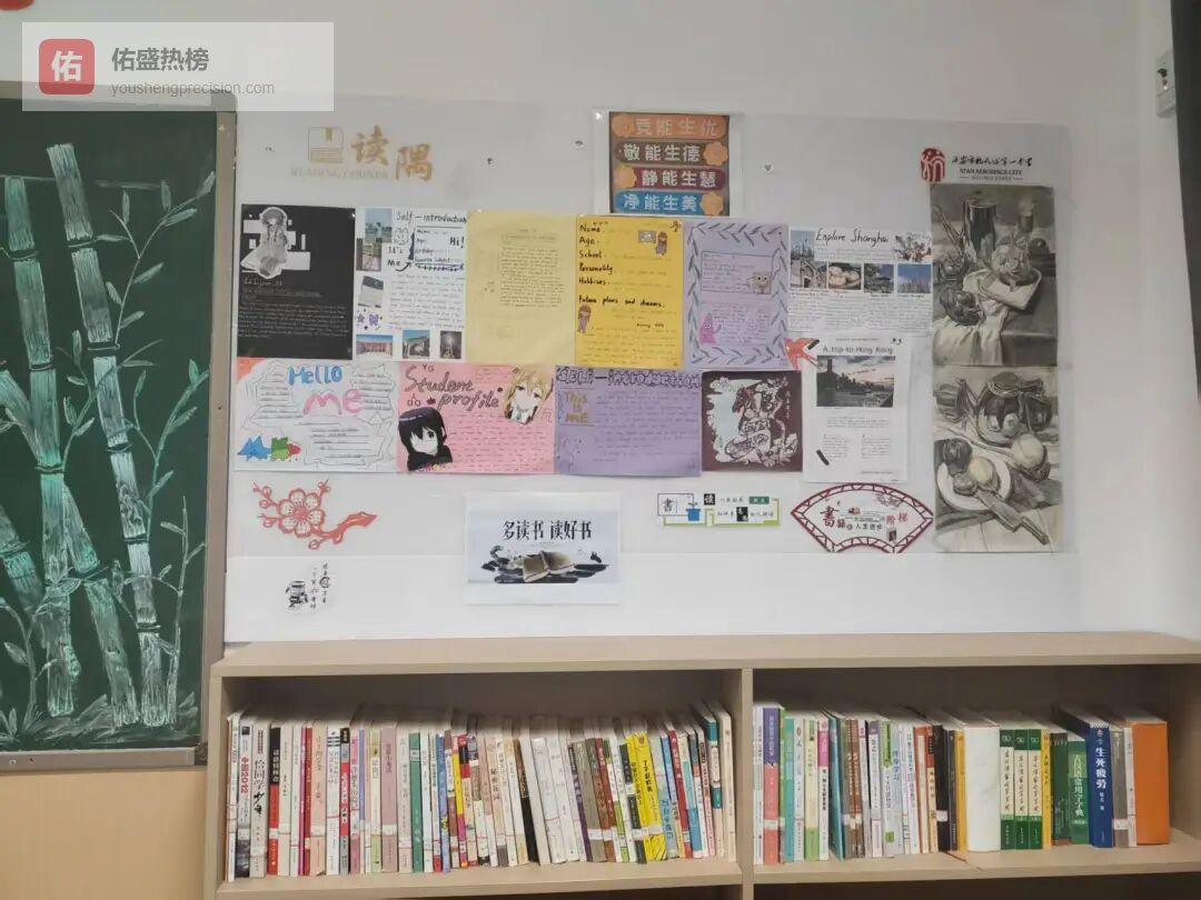 黑板报旁边,三排书架按“文学/科普/杂志”分类,最上面一层摆着全班投票选出的“本月书单推荐”,翻开任意一本,或许还能找到同学留下的便签书评。