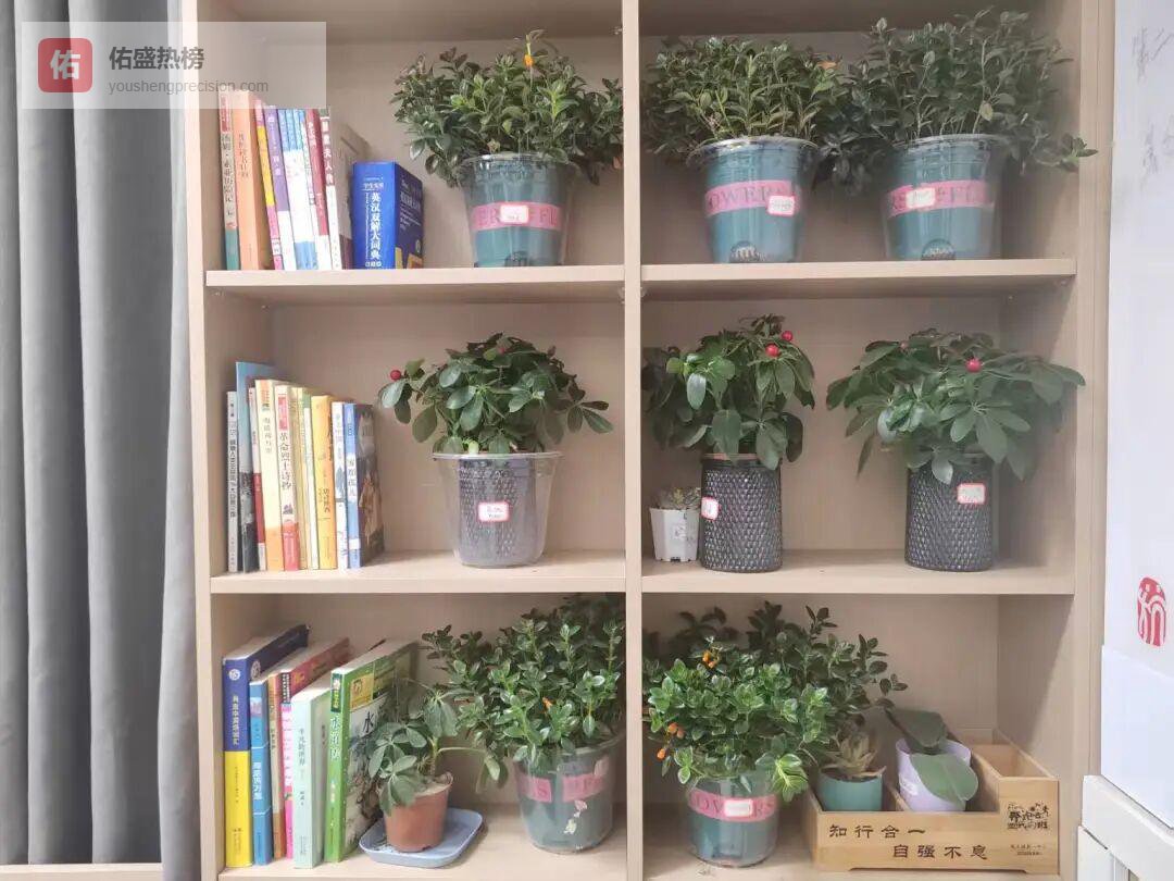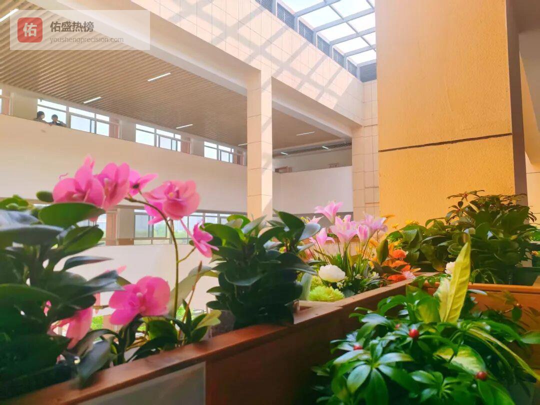 走廊绿植区一片生机盎然,各种花卉争相斗艳,风铃草、多肉、马蹄莲、紫色茉莉花、蝴蝶兰等错落有致,由“绿植守护员”轮流照料。