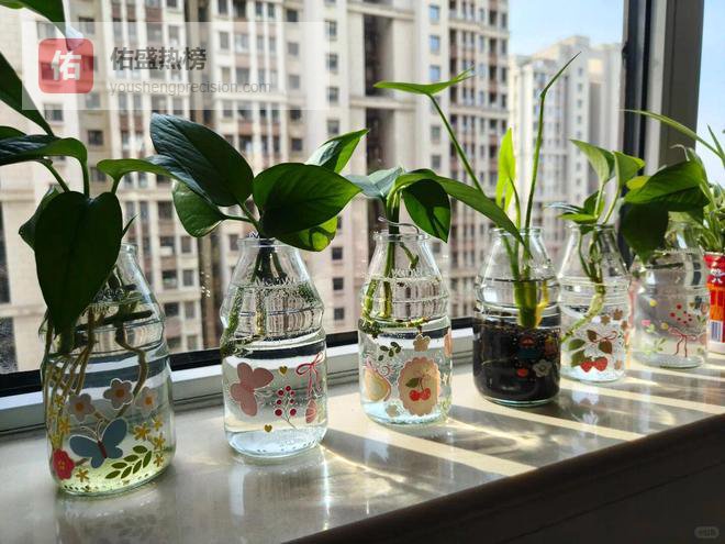 家里有些绿植需要水培,拿出养味瓶子,清洗干净之后贴上漂亮的小贴纸,