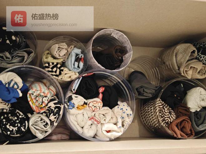 把矿泉水桶上半部分裁剪掉之后,把它们放在衣柜里格子间。