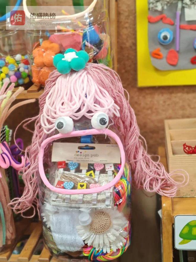 还可以用粘土在瓶盖上做一些装饰,就变成一个小怪物收纳桶。