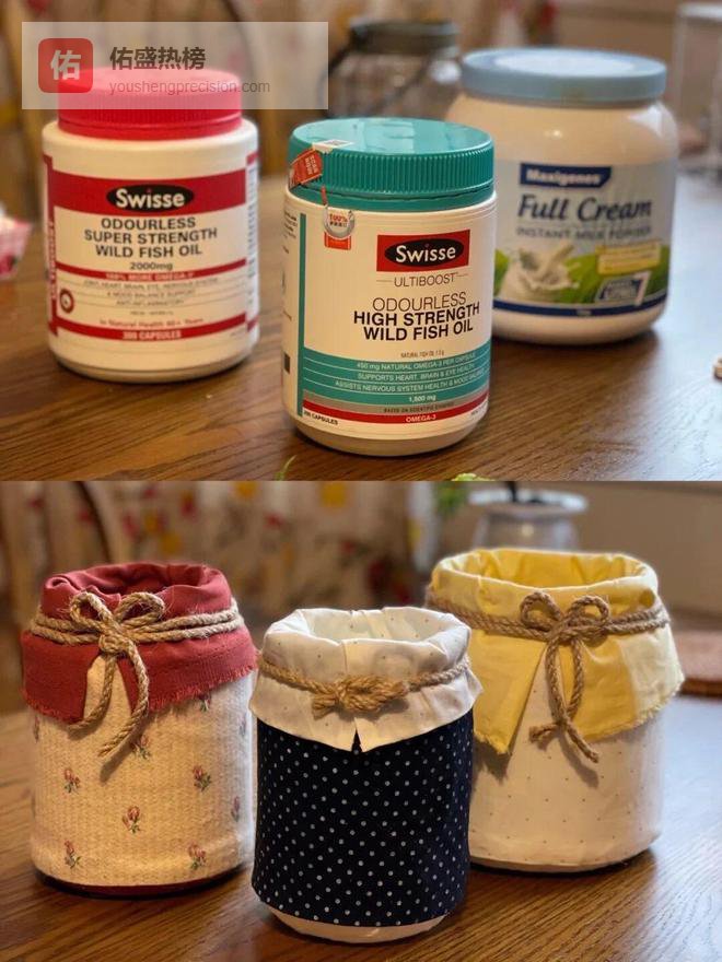 家里平常有人吃了一些营养品,吃完之后剩下的瓶子,也可以改造成小小收纳桶。