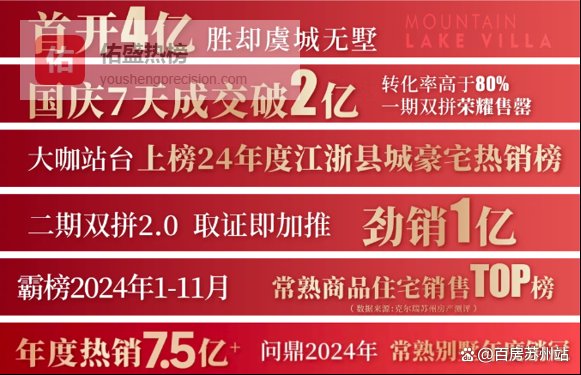 创想·樾湖山庄东区,以得天独厚的山湖禀赋与产品力,年度劲销7.5亿+,荣获2024年常熟别墅销冠,奠定了其作为山湖传世资产的不朽地位。