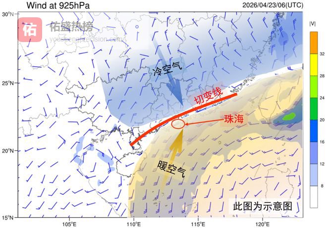 第一轮降雨是弱冷空气和暖湿气流“打架”闹出来的,冷暖气流交汇所形成的“战区”——切变线将自北向南移动,给广东带来一次大雨到暴雨局部大暴雨降水过程。