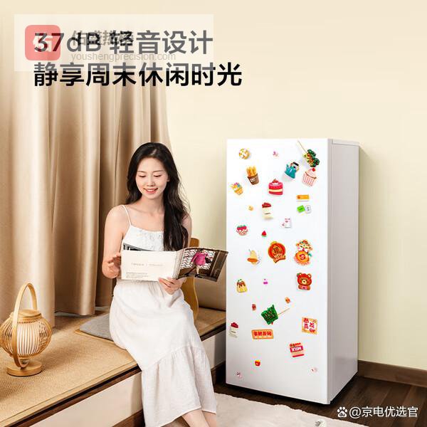 【超低噪音设计】这款冰箱运行时噪音只有35分贝左右,用的是变频压缩机和风机,几乎听不见声音,特别安静,晚上不会吵到睡觉,家里安宁更舒心。