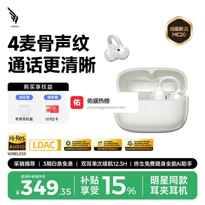 西伯利亚(XIBERIA)MC20 VPU骨声纹通话降噪耳夹式无线蓝牙耳机舒适稳固佩戴运动长续航适用华为小米苹果【明星同款】¥