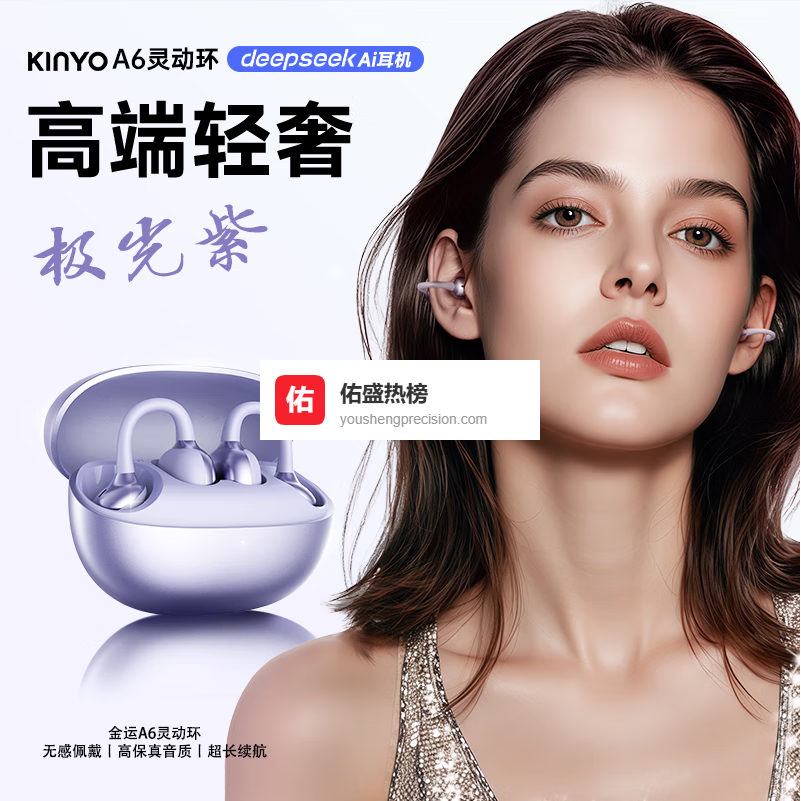金运【热销100万+丨A6灵动环】蓝牙耳机耳夹式骨传导概念开放式不入耳无线运动跑步通话降噪续航翻译 【极光紫】高保真音质丨极致舒适¥