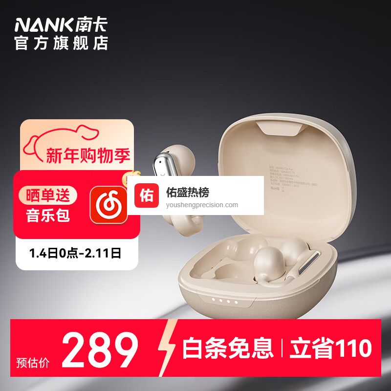 南卡(NANK)Clip Pro耳夹式真无线蓝牙耳机 不入耳开放式耳机运动跑步防水游戏通话降噪 卡其色¥